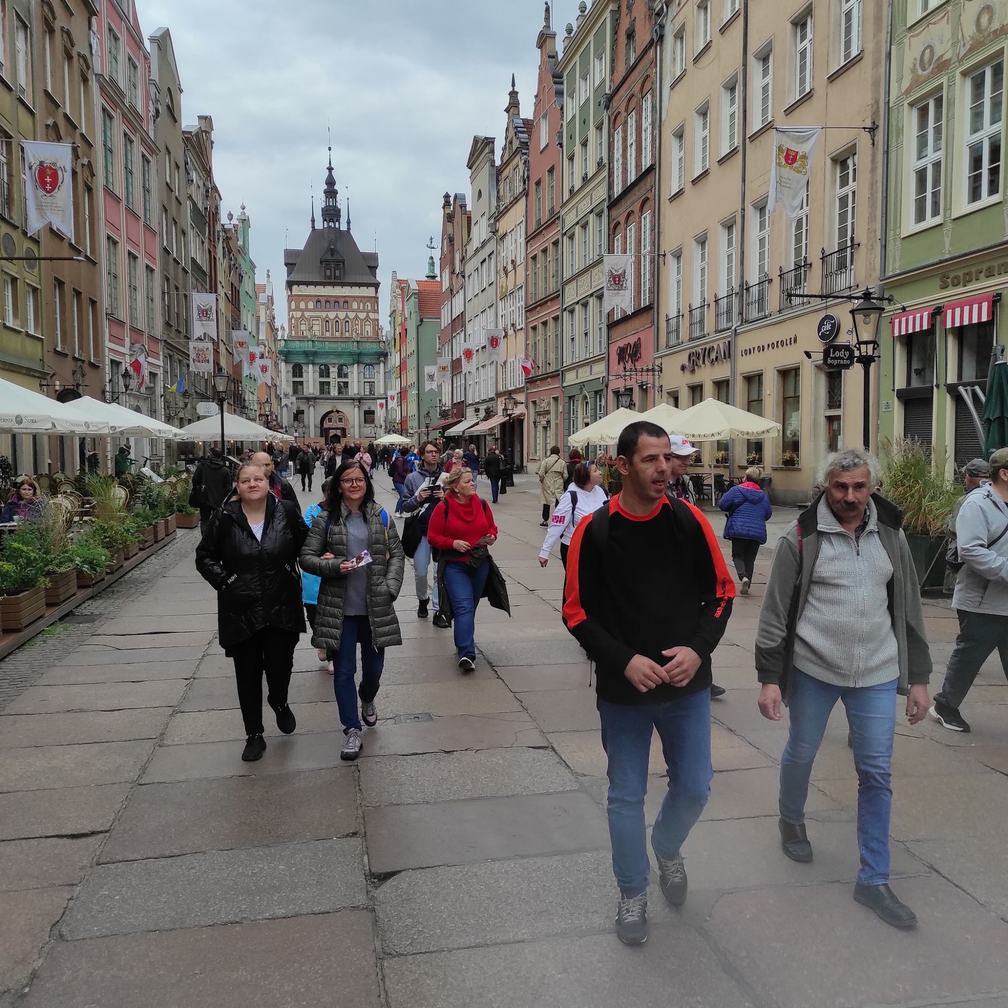 Kolejnym punktem naszej wycieczki był spacer po historycznym centrum Gdańska. Dowolność wyboru miejsc, które każdy samodzielnie mógł zobaczyć, sprawił że bez pośpiechu, w swoim tempie mogliśmy wszystko podziwiać. I tak po drodze mijaliśmy Żuraw, Bramę Zieloną, Bramę Wyżynną, urokliwe, odrestaurowane kamieniczki, gotycki Ratusz Głównego Miasta, czy kościół w którym pochowano Prezydenta Pawła Adamowicza. Bardzo popularnym i ciekawym miejscem Gdańska jest Długi Targ, który wraz z ul. Długą w XIII wieku pełnił rolę traktu kupieckiego. To właśnie tutaj podziwialiśmy symbol Gdańska – Fontannę Neptuna oraz Dwór Artusa.