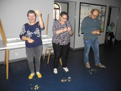 Nasze środowiskowe Święto Pyry za nami. W tematykę związaną z tym świętem wprowadziły nas quiz i krzyżówka tematyczna oraz pogadanki i zabawy ruchowe związane ściśle z tematyką naszej wielkopolskiej „pyry”. Było obieranie ziemniaka na czas oraz zbieranie jak największej ilości liści, a na koniec konsumpcja tradycyjnej pyry z gzikiem. Chętni mogli również pośpiewać i potańczyć do wybrzmiewających z głośnika melodii.