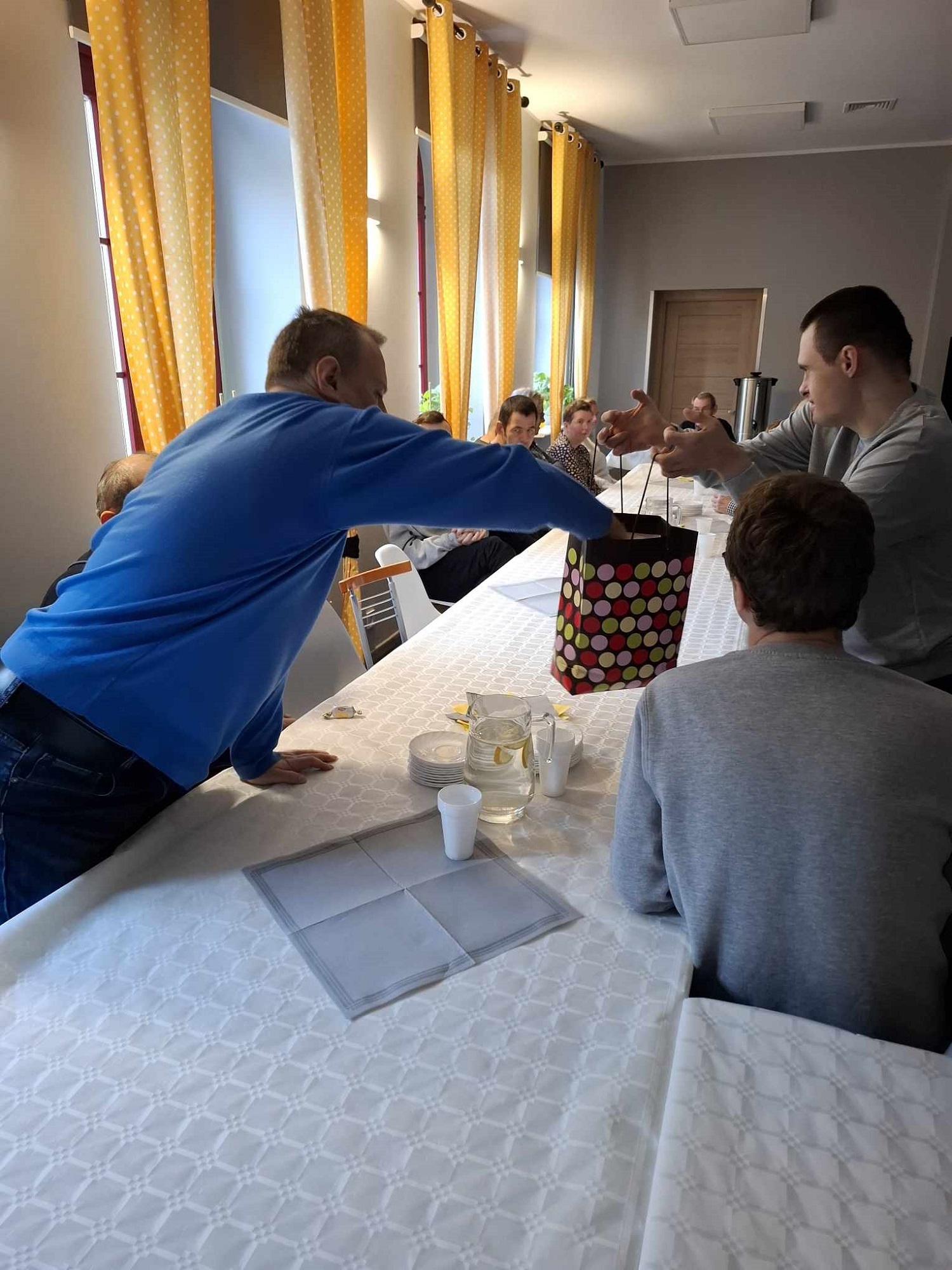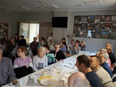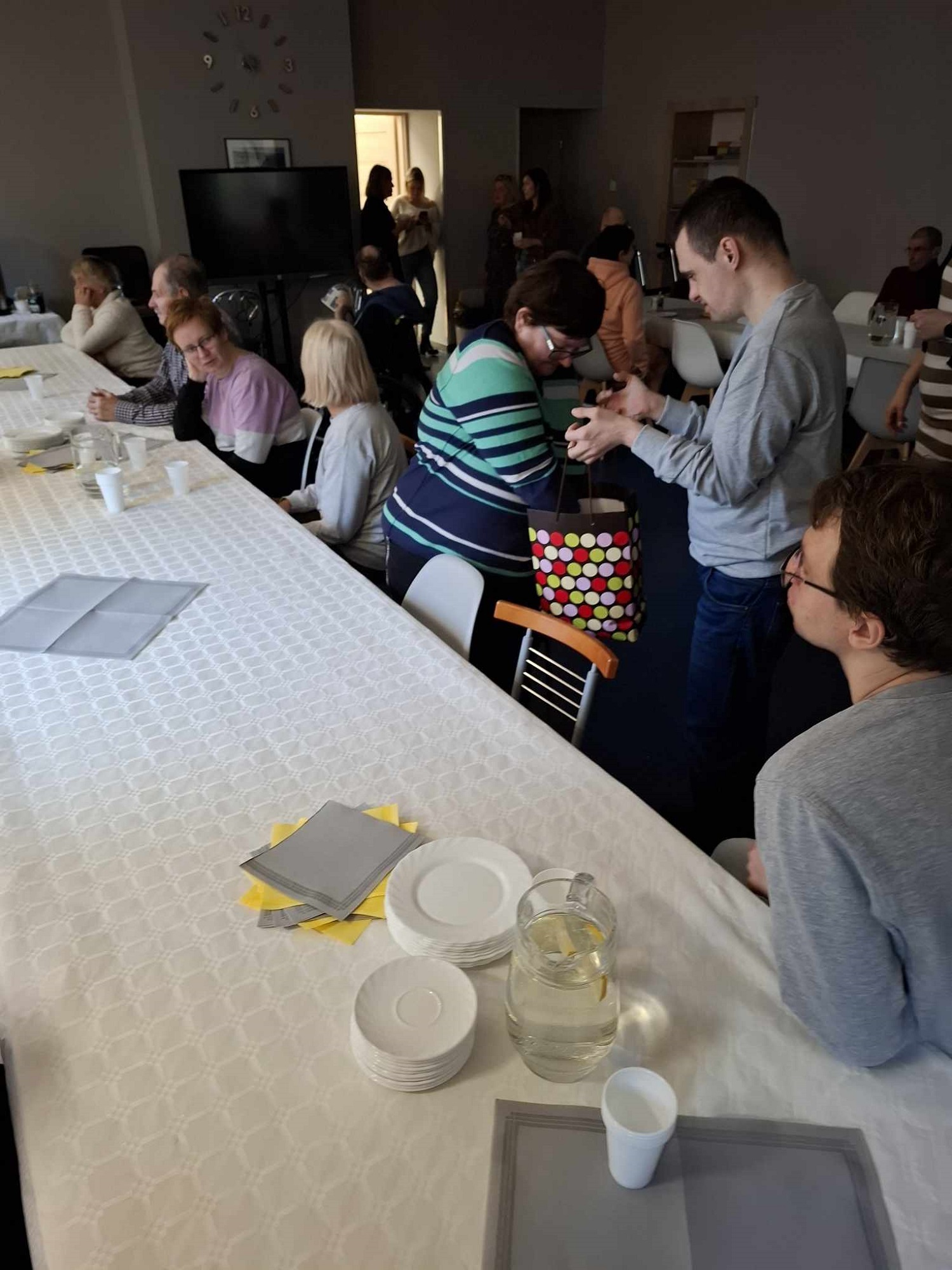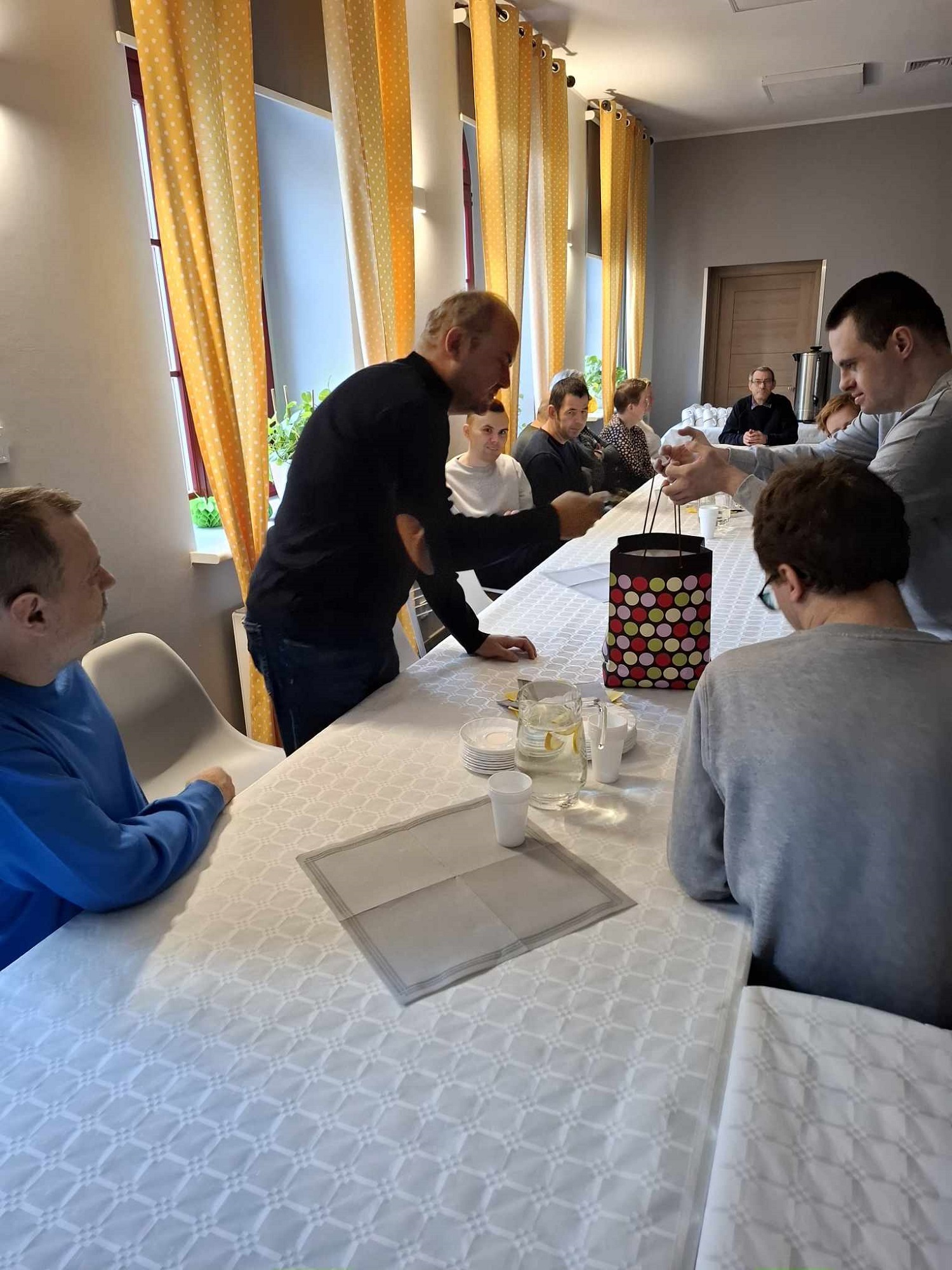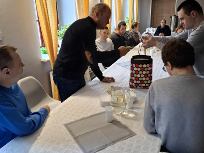 W sobotę 16 listopada gościliśmy w naszym Domu rodziców i opiekunów naszych Uczestników. W ramach warsztatów Uczestnicy udekorowali stoły oraz przygotowali dla swoich bliskich słodki poczęstunek. Pani Beata - nasz psycholog - zadbała o to, aby zaproszeni Goście poznali się ze sobą nieco bliżej - w końcu na co dzień nie spotykamy się zbyt często, a także o to, aby każdy, kto czuje taką potrzebę miał możliwość podzielenia się swoimi trudnościami i dylematami w codziennej opiece nad osobą niepełnosprawną. Dodatkową atrakcją spotkania było głosowanie na teledysk w konkursie, w którym również nasz Dom wziął udział oraz urodzinowe Sto Lat! dla naszego Darka 😊