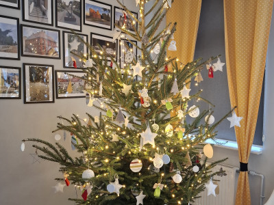 Zaczęliśmy od własnoręcznego przygotowania bombek, którymi ubraliśmy nasze świąteczne drzewko - to była prawdziwa lekcja kreatywności i współpracy, a jej efekt przeszedł nasze najśmielsze oczekiwania 😊; przygotowaliśmy tyle ozdób choinkowych, że wystarczyło ich do udekorowania choinki podczas wspólnego spotkania opłatkowego orgaznizowanego w ramach współpracy z OPS w Krzykosach 😉. Podczas warsztatów poznaliśmy również kolejne sposoby składania serwetek, które wykorzystaliśmy do udekorowania stołów na naszym środowiskowym spotkaniu opłatkowym. Nie zabrakło też pachnących w całym Domu pierników oraz świątecznego filmu przy gorącym kakao, które jeszcze bardziej otuliły nas magią zbliżających się świąt.